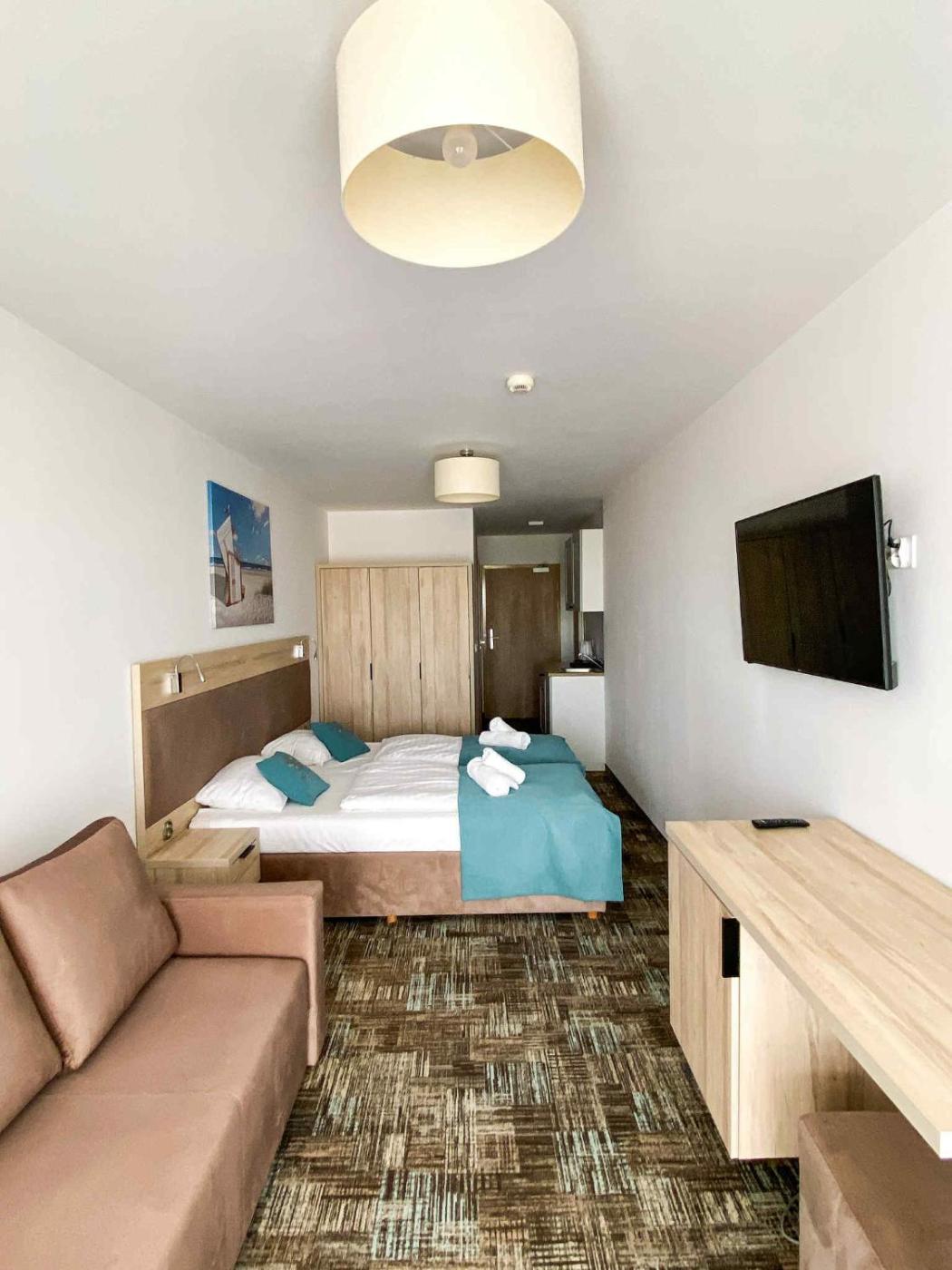 Apartament z 1 sypialnią i balkonem. The hot tub and sauna are the special features of this apartment. The apartment has 1 bedroom, 1 bathroom and a kitchenette. The apartments kitchenette is available for cooking and storing food. This apartment features a washing machine, heating, a flat-screen TV and a balcony. The unit has 2 beds. Apartament - 4 osobowy. Powierzchnia pokoju ok.: 26 mkw.