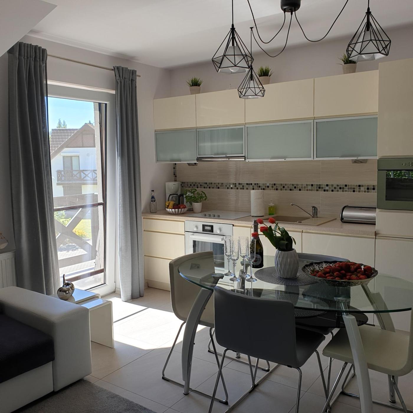Apartament z 1 sypialnią. The private pool is a top feature of this apartment. This apartment comes with 1 living room, 1 separate bedroom and 1 bathroom with a shower and free toiletries. In the well-fitted kitchen, guests will find a stovetop, a refrigerator, a dishwasher and kitchenware. Boasting a balcony with garden views, this apartment also features a washing machine and a flat-screen TV. The unit has 4 beds. Apartament - 7 osobowy. Powierzchnia pokoju ok.: 50 mkw.