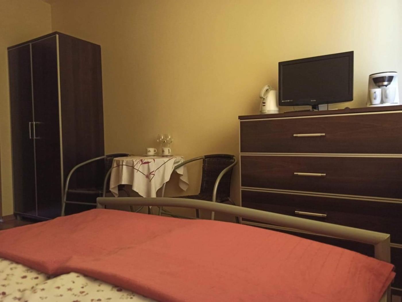 Mały pokój Dwuosobowy. Offering free toiletries, this double room includes a private bathroom with a shower. The double room is fitted with a flat-screen TV, a tea and coffee maker, a wardrobe, as well as heating. The unit offers 1 bed. Pokój Dwuosobowy - 2 osobowy. Powierzchnia pokoju ok.: 10 mkw. ;